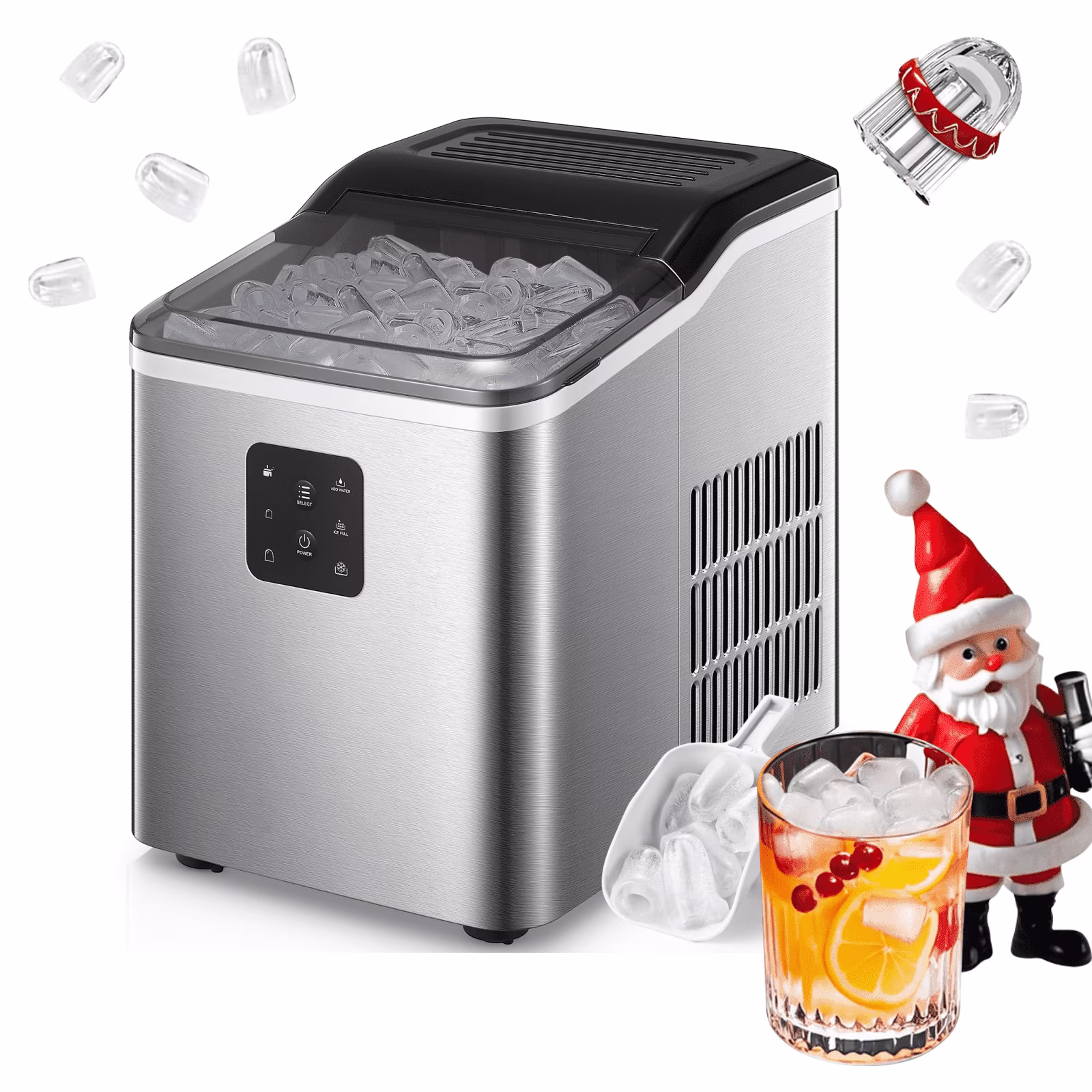 Stainless Steel Ice Makers Countertop 30lbs in 24h, 9 Bullet Cubes in 5 Mins, 2 Sizes, Self-Clean, FOHERE