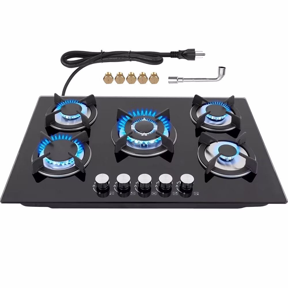 GRACEALL Gas Stove 30inch 5 Burners, Built-in Gas Stovetop with NG/LPG Conversion Kit, Glass Top Gas Burner (30in x 20.5in)